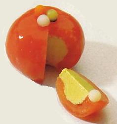 Срезать с помидора «крышечку», удалить сердцевину, наполнить яичным кремом.